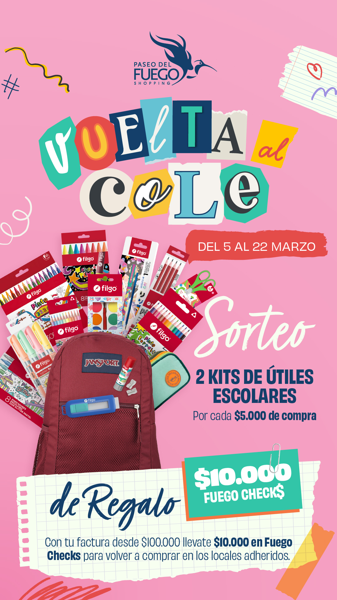 Por cada $500 pesos de compra en cualquiera de los locales ubicados en Paseo del Fuego Shopping y durante la vigencia mencionada, le corresponderá al cliente una chance para el sorteo. No hay límites de chances por persona, la cantidad dependerá del monto total del/los ticket/s de compra, siempre asignando uno (1) por cada $500. Las facturas son acumulables, hasta 5 por vez. Para participar el cliente deberá cargar sus datos personales y los datos de cada factura en www.paseodelfuego.com.ar. Podrá hacerlo todos los días y durante las 24hs mientras dure la promoción. Una vez corroboradas las facturas cargadas por personal del shopping, le llegará al cliente por e-mail la confirmación de su participación. En el caso de que haya algún error en la carga, se rechazará la factura y se le informará al cliente el inconveniente para que pueda volver a realizar la carga correctamente y complete su participación en la promoción.