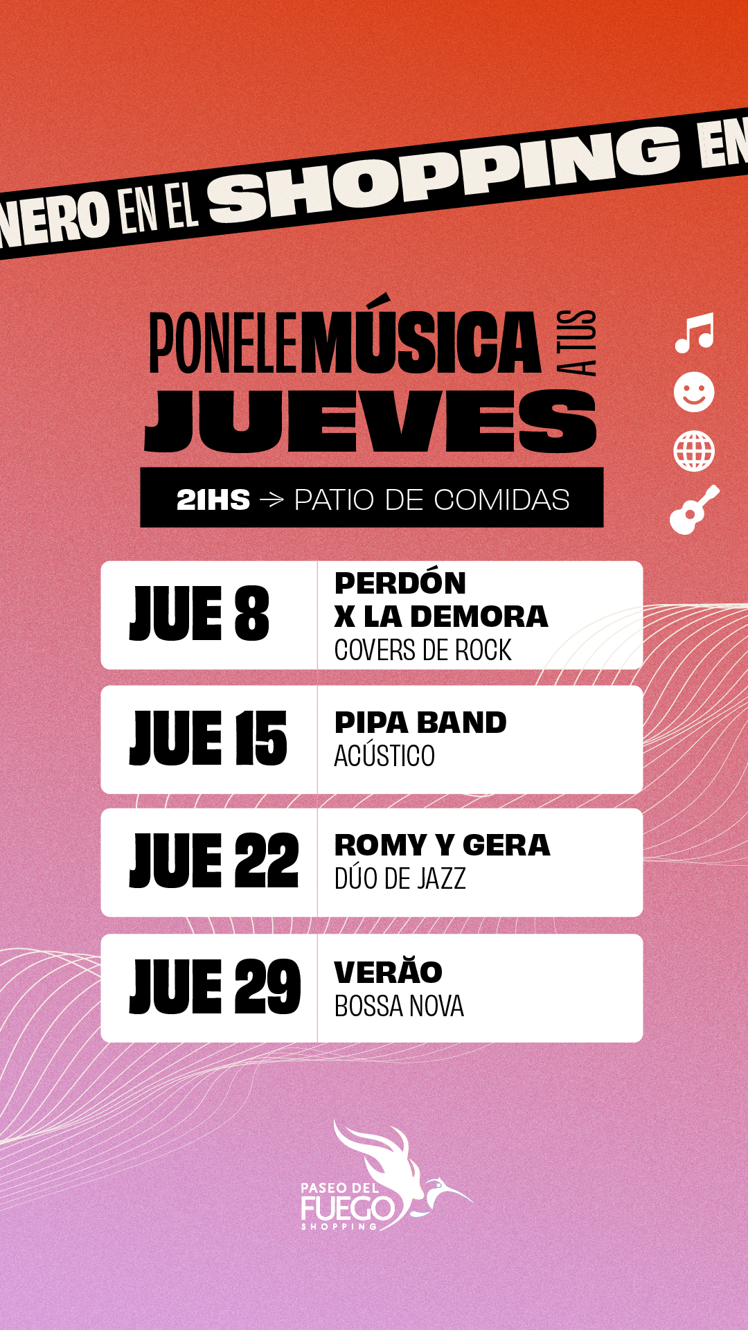 ¡Todos los jueves de enero, Ponele Música a tu semana en @paseodelfuego!